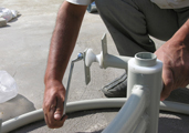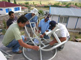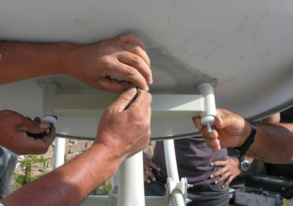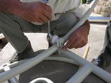 Firstly the polyamide constellation to which the curved support would be attached, subsequently the rollers that maintained the movement were attached to the legs that fixed the cooker to the ground. |