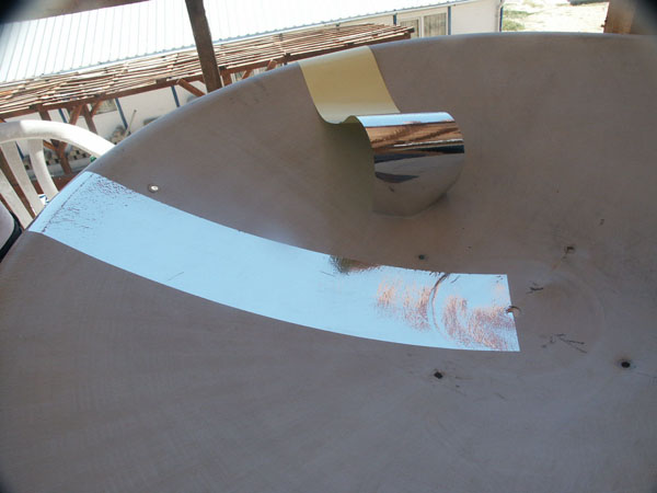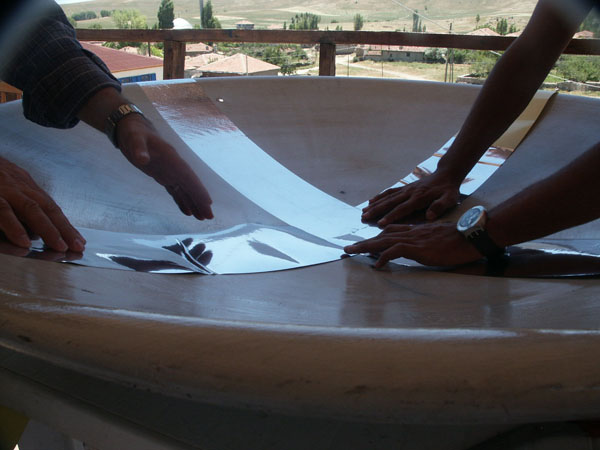 Aluminium cut in 15 cm wide strips for covering the surface of the calyx was pasted vertically to each others from the center to the periphery in a way not to leave any empty space on calyx. |