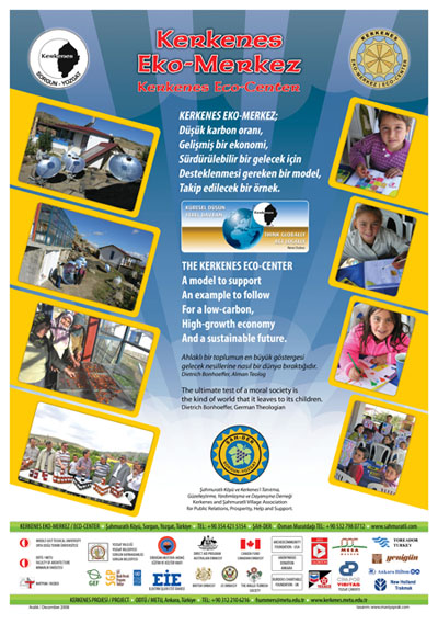 Kerkenes Eko-Merkezinin, hem yerel olarak hem de ulusal bazda kullanılabilcecek düşük karbonlu hızlı büyüyen ekonomiye bir örnek teşkil edebileceğini gösteren poster. (Grafik tasarım Ali Çinki)