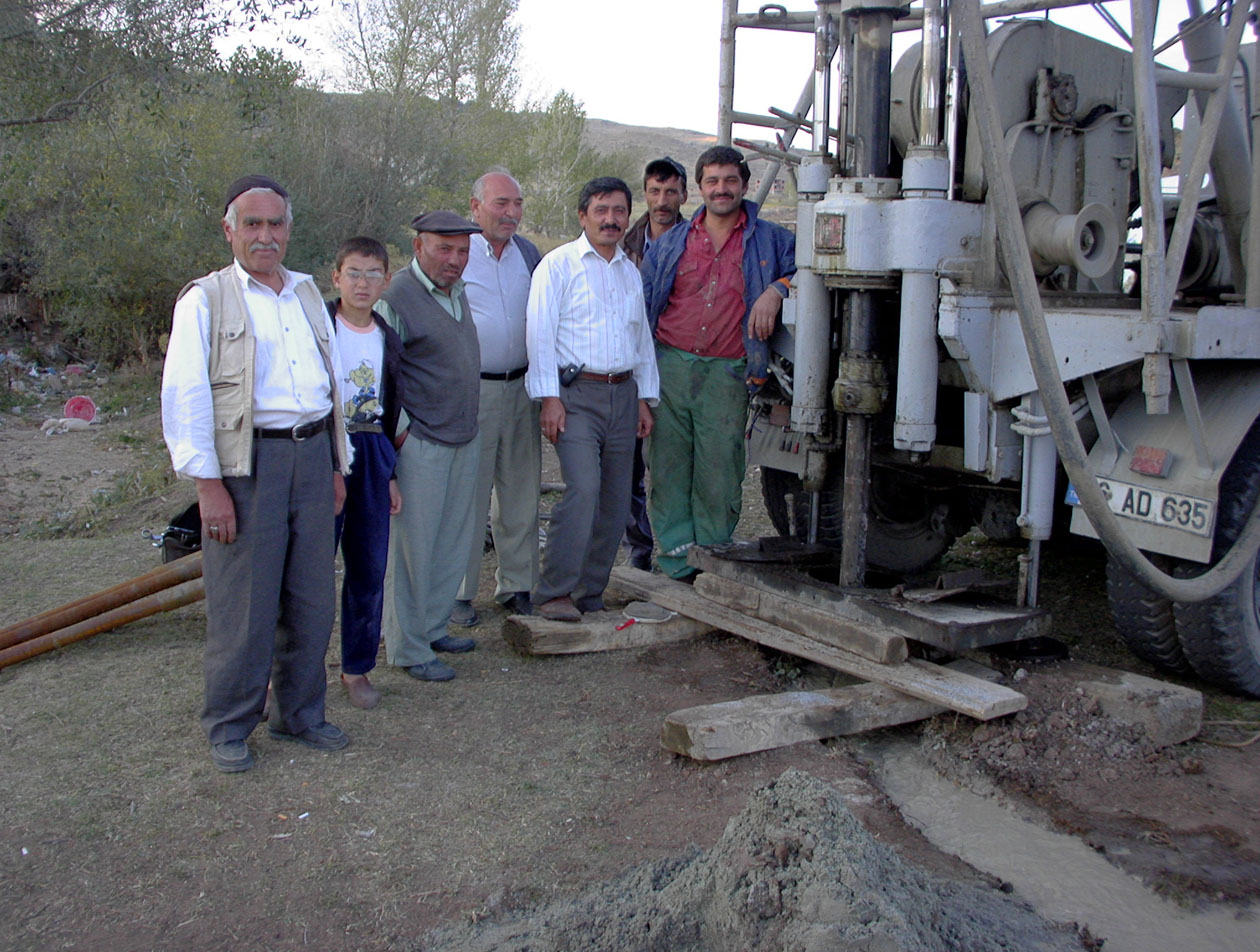 Figure 7: The drilling activities attracted our good neighbors, curious to see how much water would pour out. The drilling machine cored down to 17m into the granite, after which it was decided to stop.