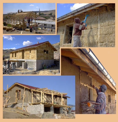 The straw bale house construction was well advanced by the end of September 2004. (04kejv0904, 04kejv1307, 04kejv1317, 04kejv1319, 04kejv1401)