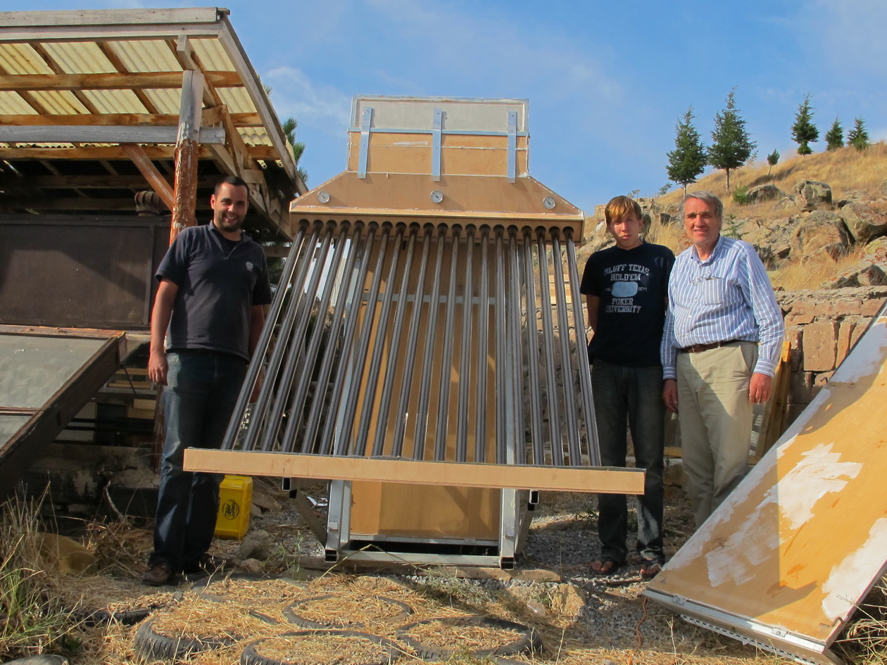 Figure 11. Güner and Korkut Mutaf with the help of Sergey Emeliyanov mounted the motorised solar dryer at the Kerkenes Eco-Center.
