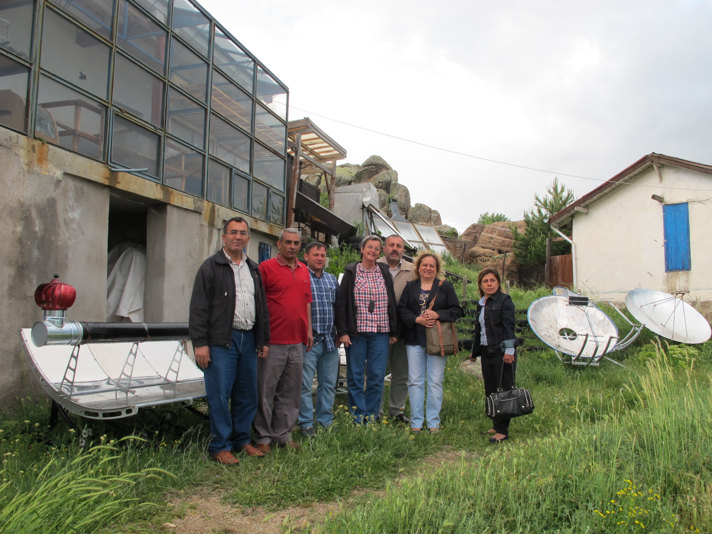 Visitors in the spring. The solar cookers are often the focus of interest.