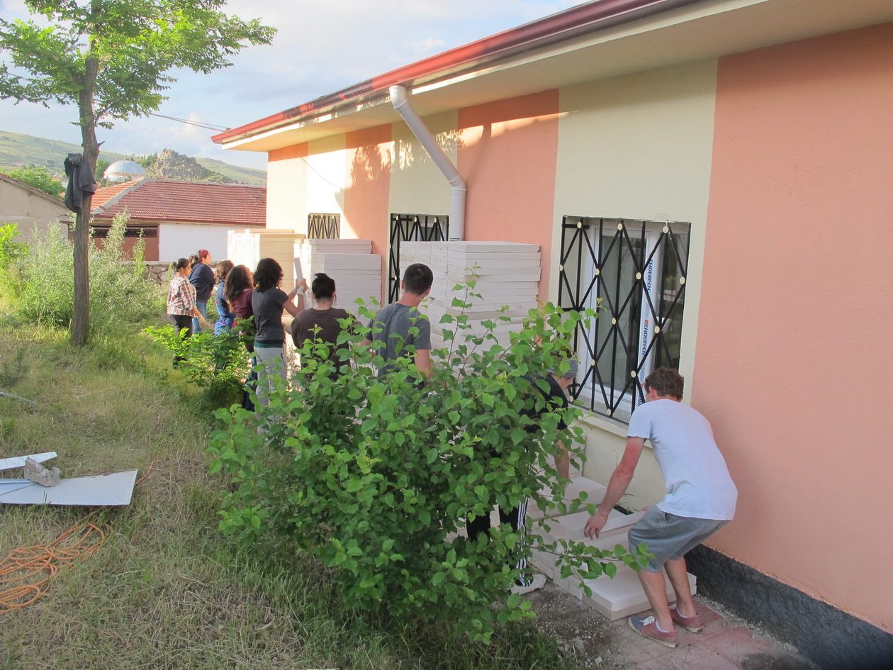Students used gazbeton to build missing furniture.