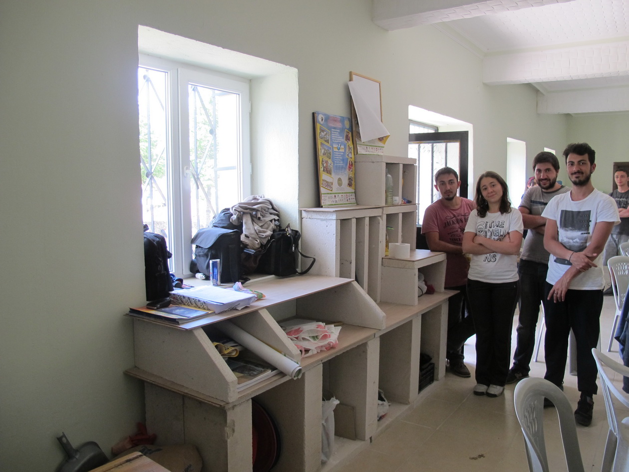 Designing and building shelves for tools.