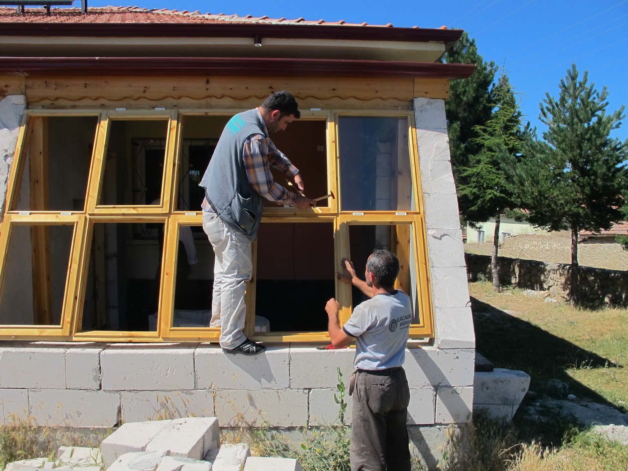 Construction of solar space on the south façade.