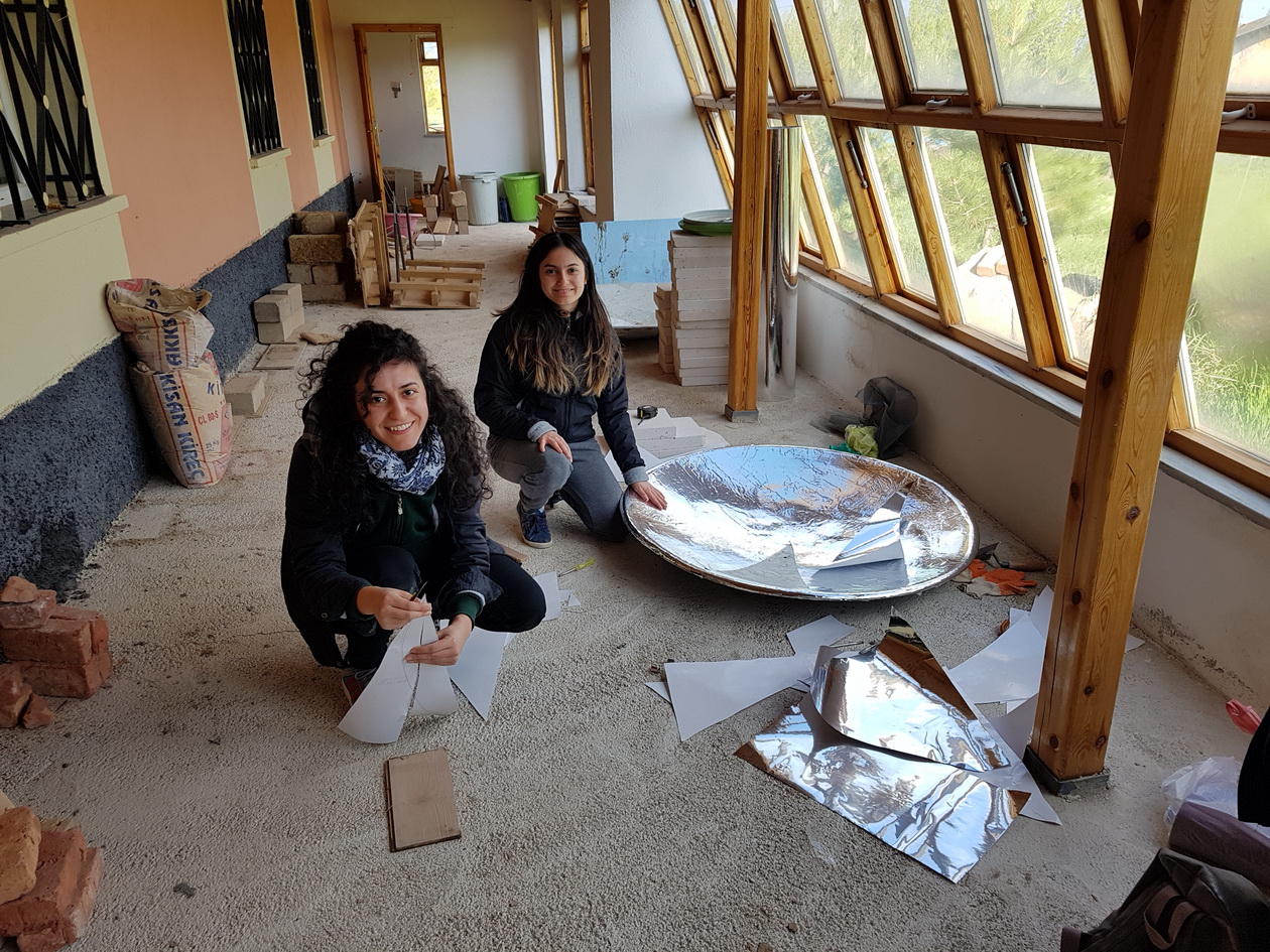 Arranging the cut pieces of foil.