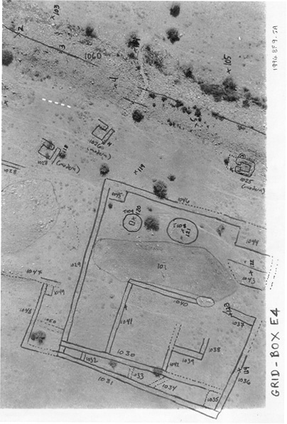 A balloon photograph taken from 100m above with plan sketches and defined check points on it.
