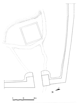 ve kapı kulelerinin üzerinden geçen modern traktör yolunu gösteren planı.
