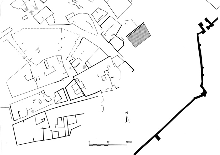Complex" bottom left with, urban blocks, terraces and streets
