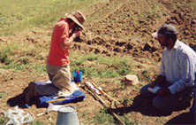 JEOMORFOLOJİK ARAŞTIRMA Kanak Su Havzasının Holocane dönemindeki evrimini ve Demir Çağı kentinin çevreye etkisinin anlaşılmasını amaçlayan jeomorfolojik araştırma 1999 sezonunda başlamıştır (Şekil 19). 1999 yılı çalışmasının asıl amacı Kerkenes Dağı’nın kuzeyinde bulunan ve dağdan gelen tüm yağmur ve kar sularının aktığı Eğri Öz Suyu vadisi sedimentinde bir dizi sondaj açılması ve tahmin edildiği gibi yararlı sonuçlar elde edilme olasılığının değerlendirilmesiydi. 3 adet sondaj açılmış olup sediment örnekleri gelecek aylar içerisinde analiz edilecektir. İlk sonuçlar, vadi tabanının yakın zamanda bir kaç metre sediment ile dolmuş olduğubnu ortaya çıkarmıştır. Bu da göstermektedir ki, geniş çaplı bir jeomorfolojik ve sedimentolojik araştırma programı çok yararlı olacaktır. Fakat hem coğrafi hem de kronolojik olarak bu araştırma, arkeolojik çalışmanın kapsamı dışında kalmaktadır. Bu yüzden gelecek yıllarda bu tip bir çalışmayı destekleyecek sponsorlar arayışına girilecektir.