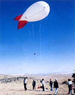 camera suspended from a helium filled blimp was used to take vertical