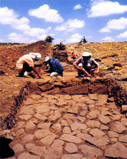 areas were stone paved (foreground). These excavations are conducted jointly