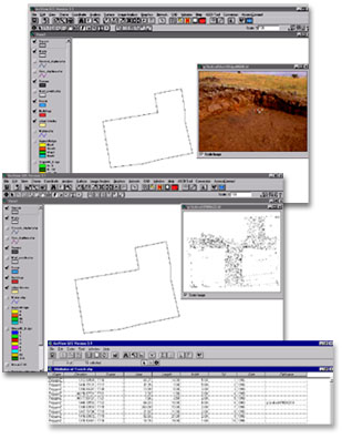 Trenches as shape files in ArcView can be seen with the drawings (top