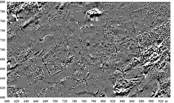 - West end of the 'Palace Complex' at centre right, street and urban block. - Sağ orta kısımda 'Saray Yapı Grubu'nun batı ucu, sol orta kısımda ise cadde ve kentsel yapı adası görülmektedir.