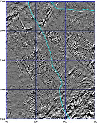 bir alanda gradyometre ile yürütülen yüzey araştırması, genel bir görünüm