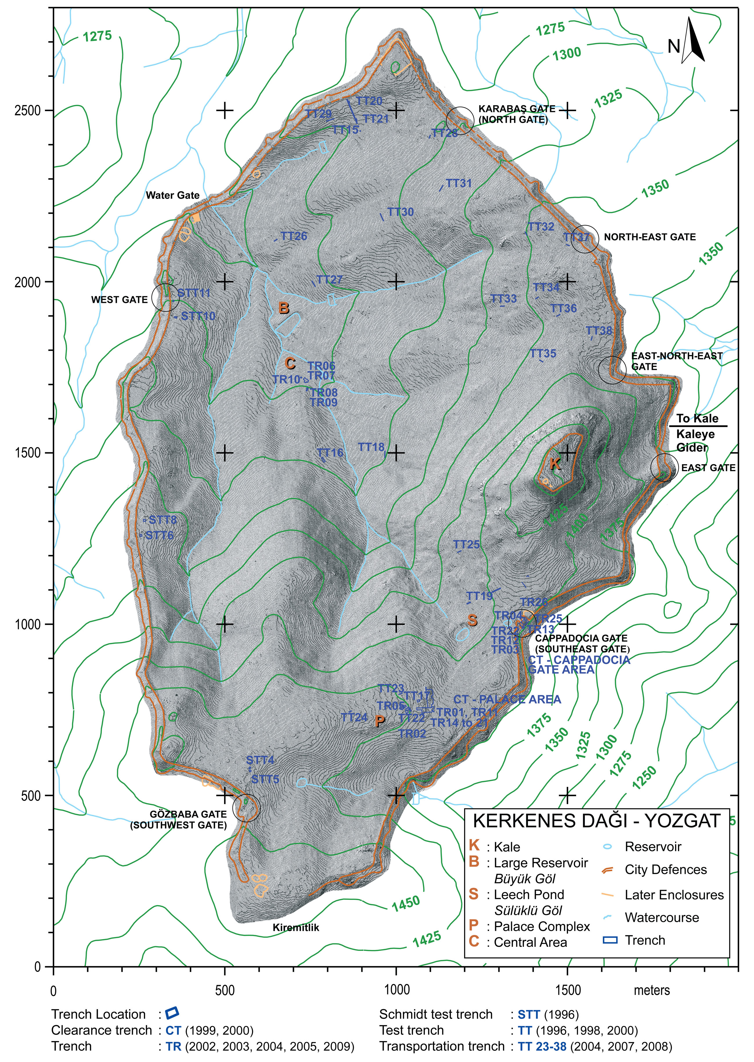 Figure 3. Digital Terrain Model (DTM) made by Işlem GIS, using ERDAS Imagine, from the GPS survey of Kerkenes.Şekil 3. İşlem GIS tarafından, ERDAS Imagine yazılımıyla GPS yüzey araştırması verilerinden, hazırlanan Kerkenes Sayısal Arazi Modeli