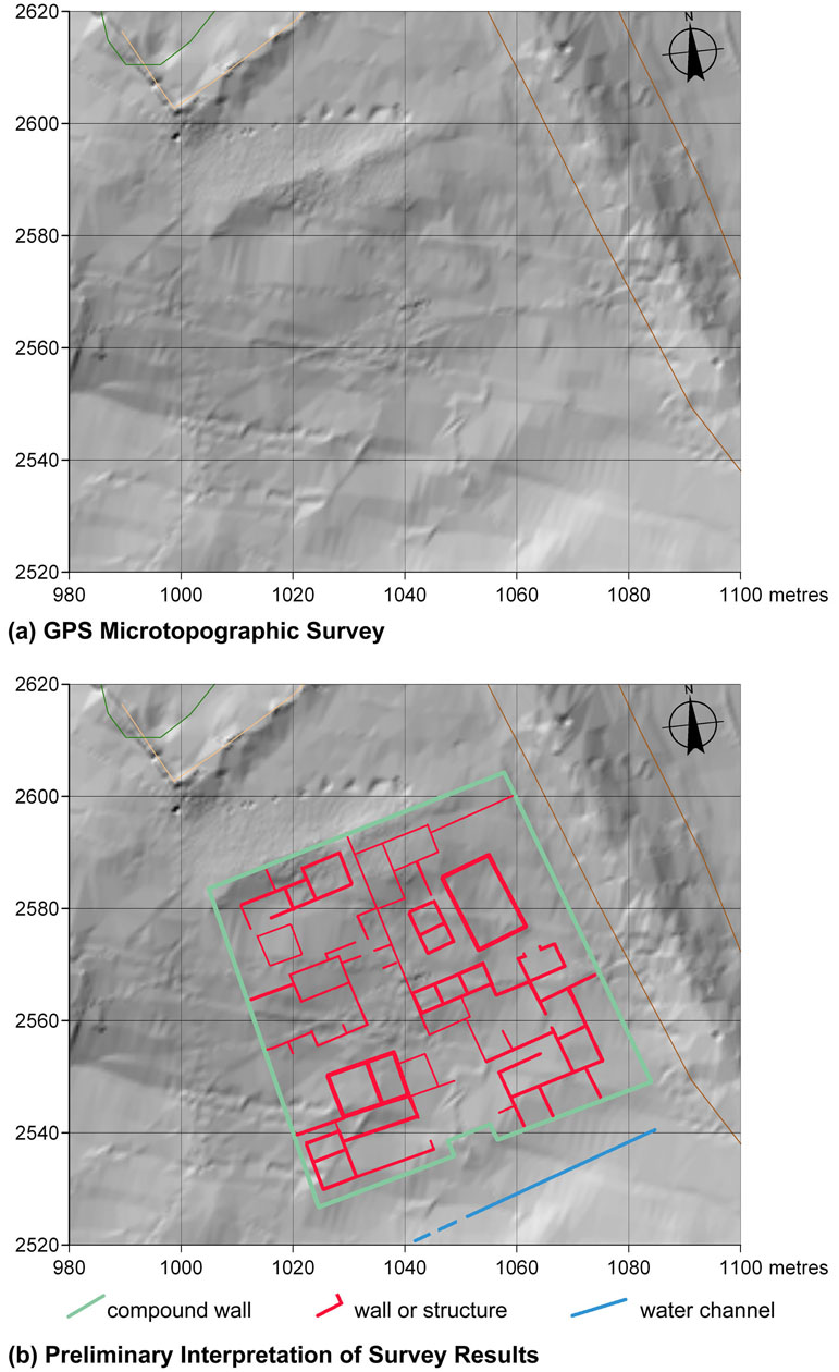 (a) GPS topographical survey map and (b) preliminary plan of