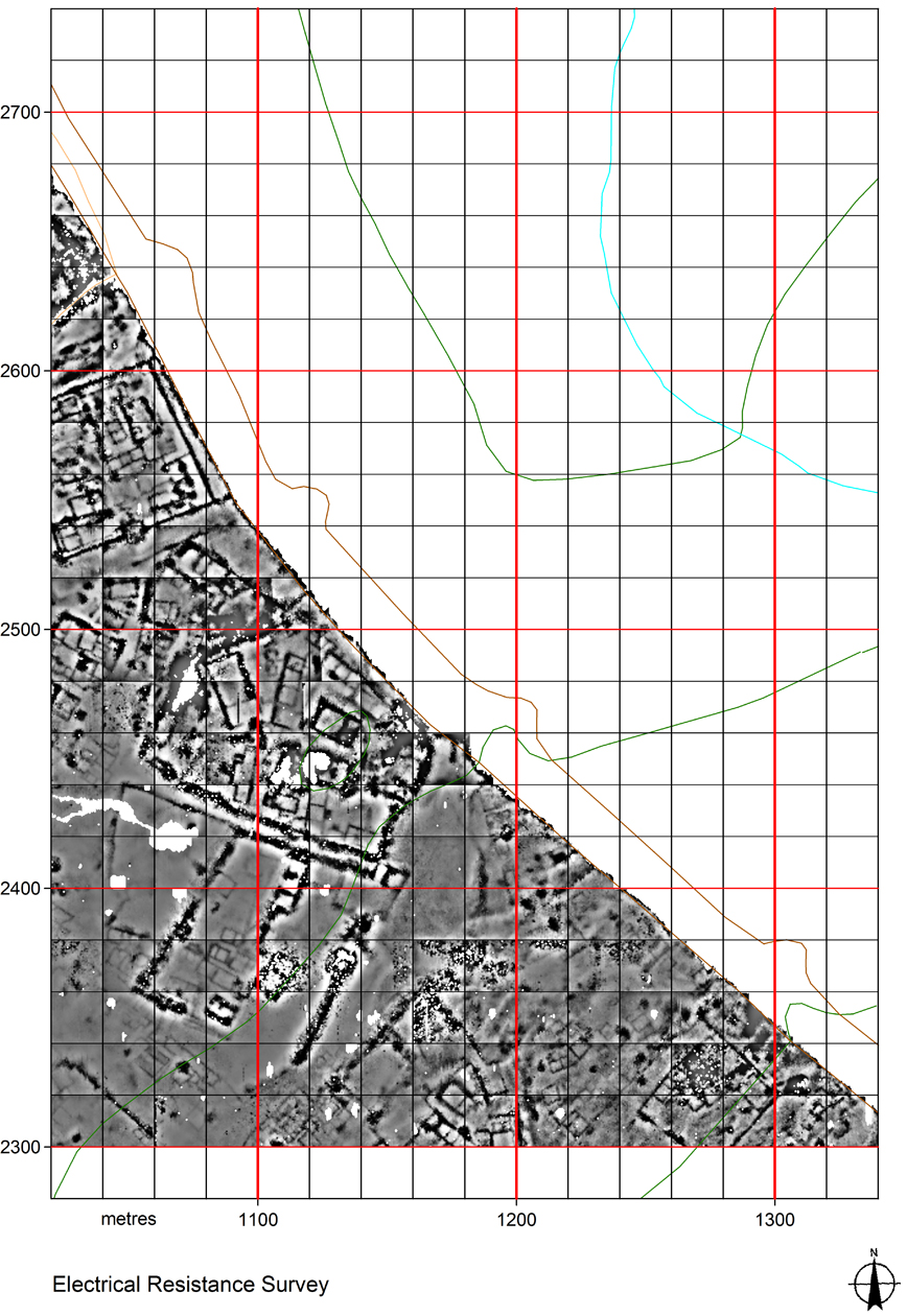 Electrical resitance survey map from 2011 showing the area inside the North Gate.