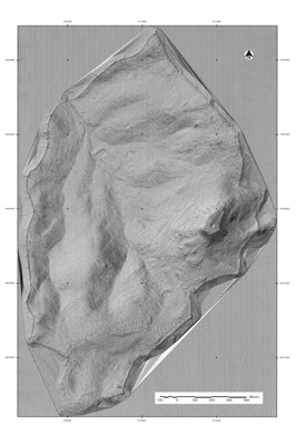 Digital Elevation Model (DEM) of the city, with north at top, made from