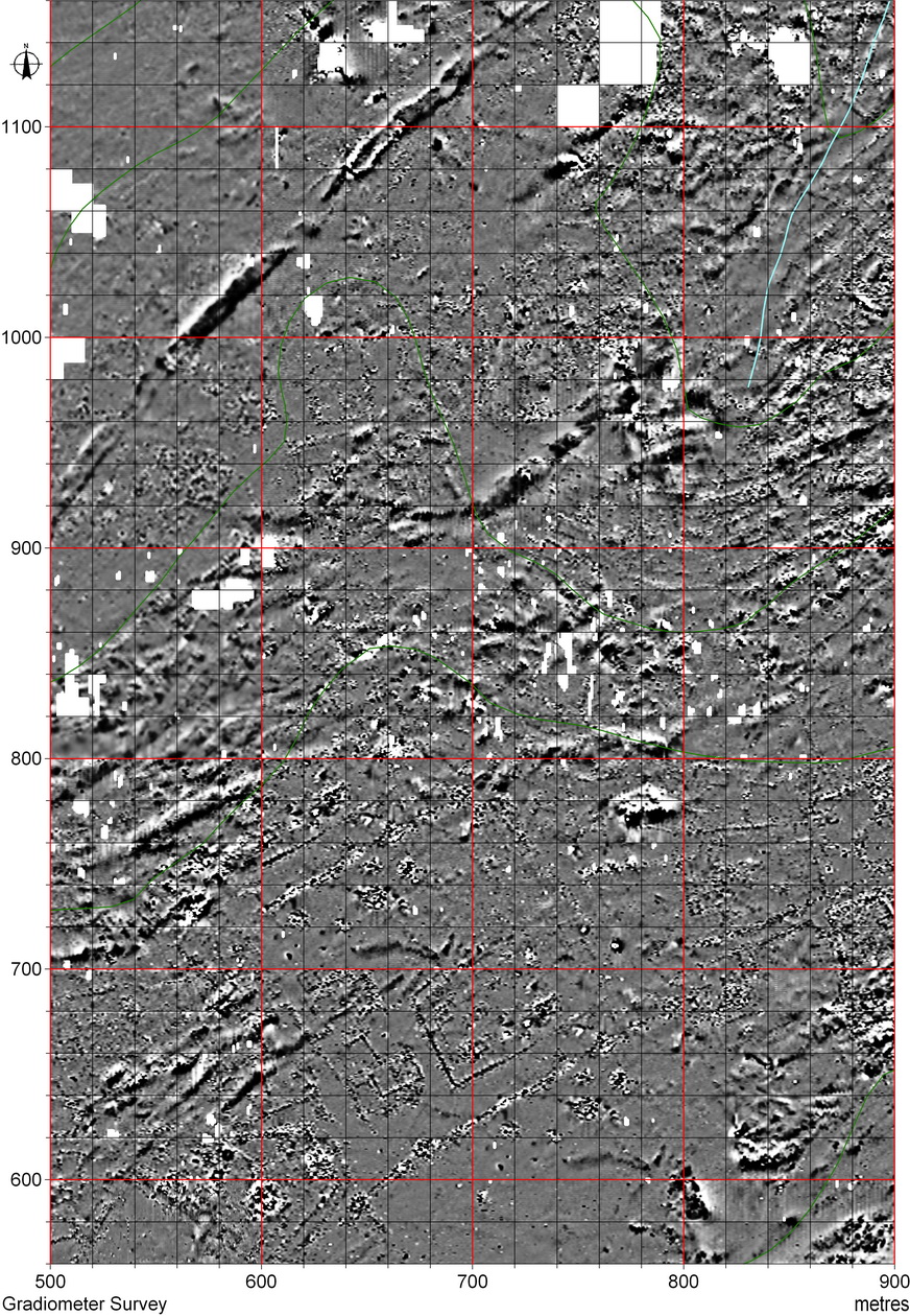 Gradiometer survey towards the western end of the Southern Ridge. Compare with