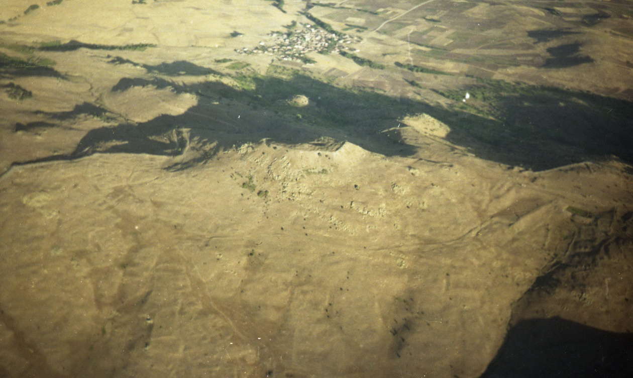 - Looking eastwards across the city. The Kale is at centre and the “Polo Field” at centre right. Sahmuratli Village lies in the plain below.