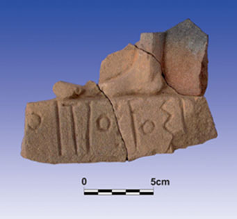 Figure 11: Figures in human form, toe-totoe, above an Old Phrygian inscription. Şekil 11: Eski Frig yazıtı üstünde ayak parmakları birbirine değen insan biçimli figür.