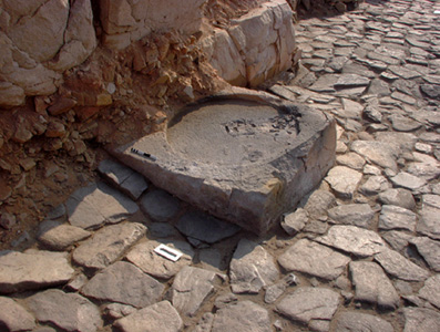 Saray Yapı Grubu'nun Anıtsal Giriş'inin kuzey tarafında bulunan kumtaşı sütun kaidesi.