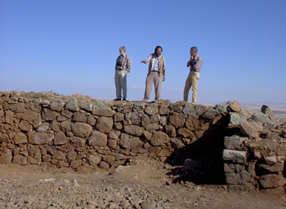 Visitors from Sardis, Crawford H Greenewalt Jr and Colin Wright, view progress in the clearance of the inner chamber. Sardis Araştırmasından ziyaretçiler, Crawford H Greenewalt Jr ve Colin Wright, kapı iç odasında yürütülen temizlik çalışmalarını izlerken. |
