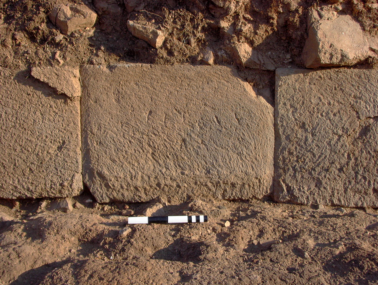 Ashlar no. 14, which was not fully uncovered in 2002, was found to have a total of six incised strokes.