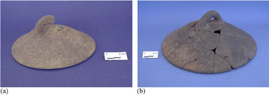(b)Daha geniş çaplı benzer bir pişmiş toprak kapak.