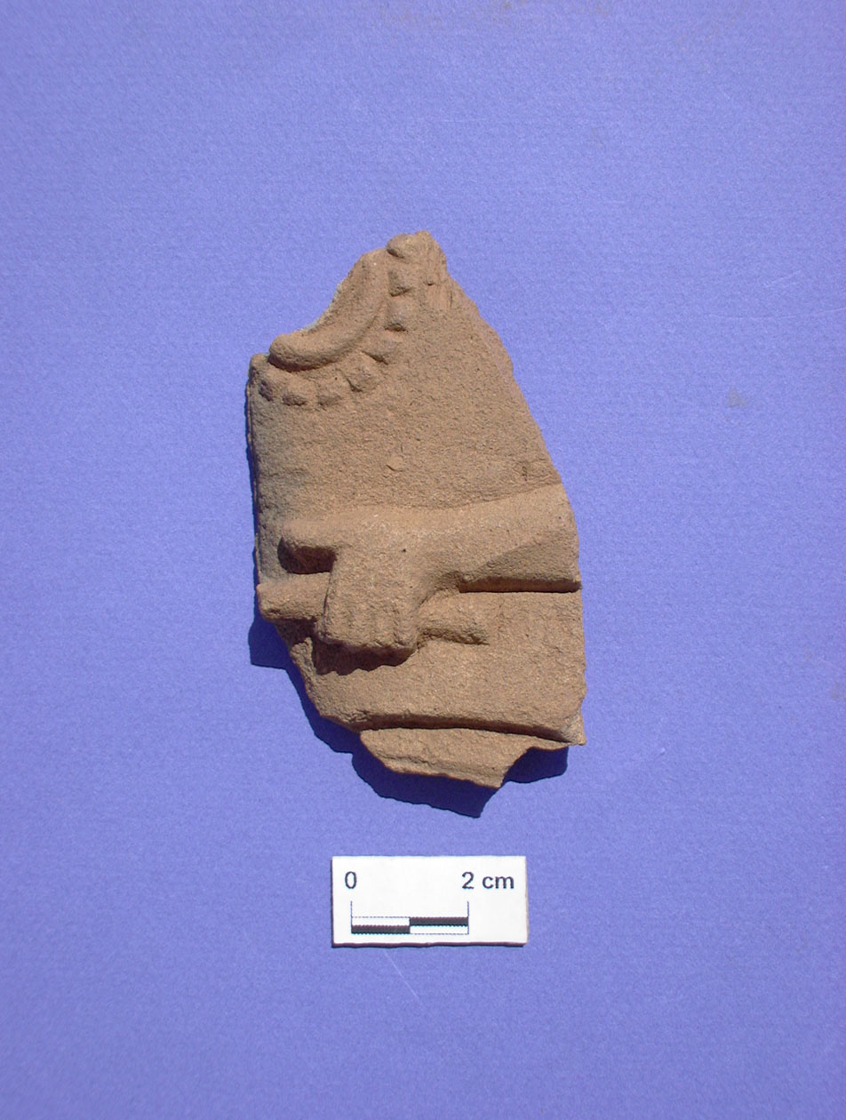 Part of a torso perhaps holding the butt of a spear.