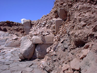 Kulenin güneydoğu köşesi ile doğu duvarında yerinde bulunan dört sıra granit taş.