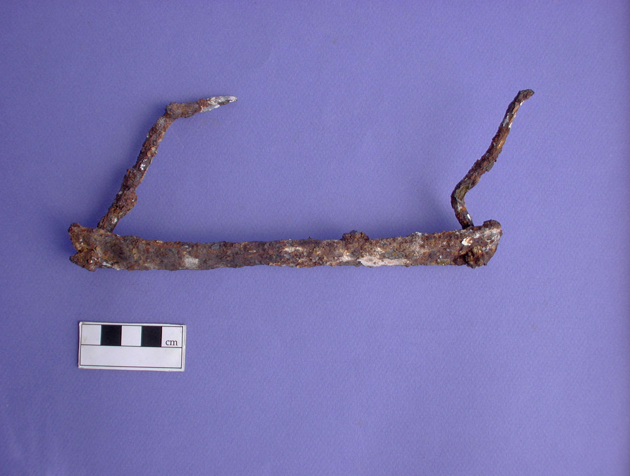 Ahşap mimari elemanları sabitlemekte kullanılan iri çivili demir bir kenet.